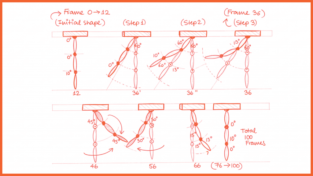 These were going to be part of the new pendulum assignment. Professor George showed me his version of the pendulum animation, which was more detailed and had multiple motions. But for me, he asked to focus only on a simple straight-line motion to make sure I clearly understood the basics first.